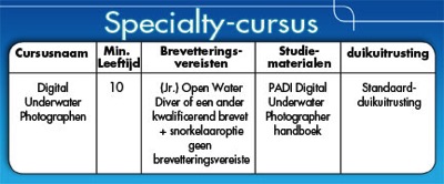 {}De PADI Digitale onderwaterfotografiecursus en de PADI Onderwaterfotografiecursus